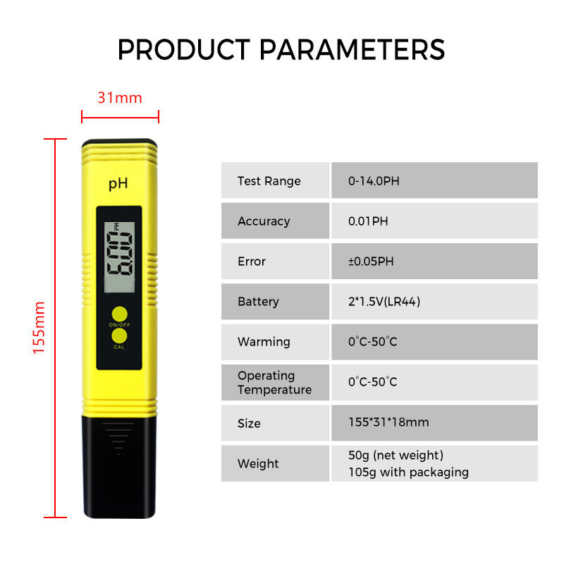 PH02 Tester Portatile per pH, Misuratore Digitale di Qualità dell'Acqua, Bestseller Transfrontaliero