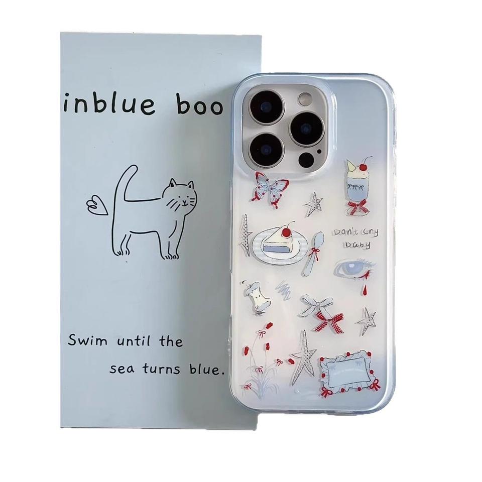 PH534 stile coreano farfalla tè pomeridiano per iPhone 15/16 Promax custodia del telefono adatto per Iphone 15plus sfondo bianco
