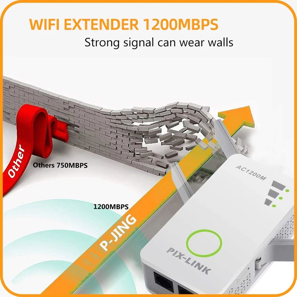 PIX LINK LV-AC09 Ripetitore Dual Band 1200Mbps 2.4/5GHz, Router AP, Estensore di Rete WiFi, Amplificatore di Segnale per Casa