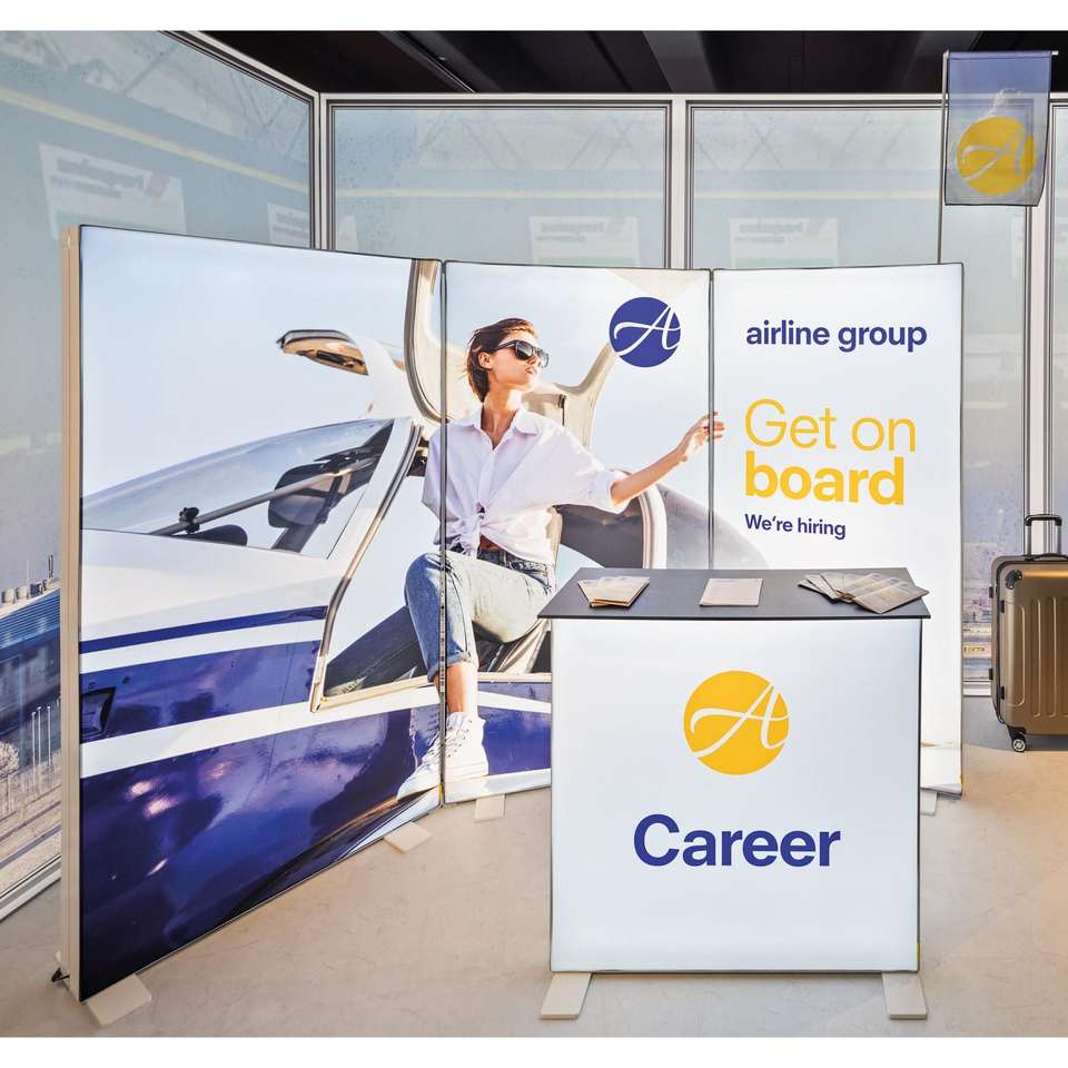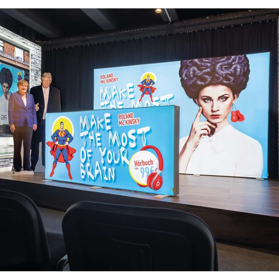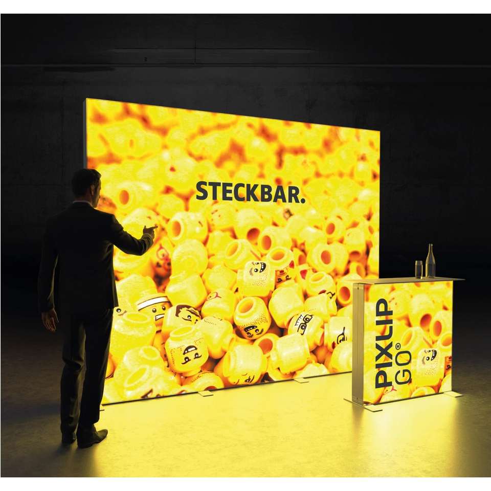 PIXLIP GO Stand Fieristico 6 Lightbox LED 300x250 cm montaggio senza attrezzi incluso stampa Counter S Black e borsa da trasport
