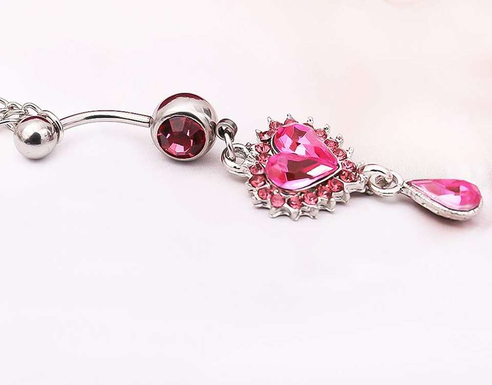 POENNIS Fashion Sexy strass ombelico anello in acciaio chirurgico amore cuore ciondolo Piercing catena del corpo anello della pancia catena della vita