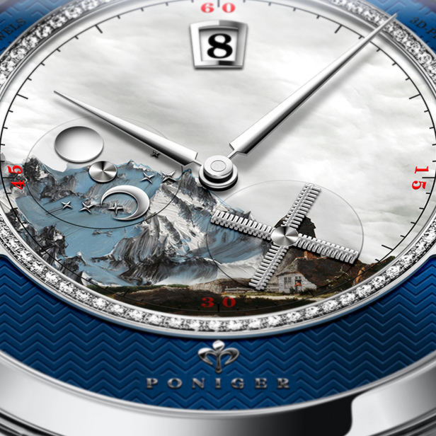 PONIGER oem orologi meccanici private label personalizzato quadrante blu mens di colore orologio da polso in pelle relogio masculino