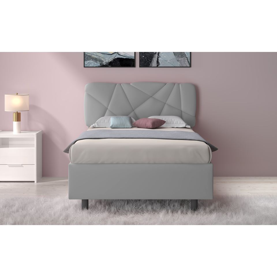 Letto contenitore POP, misura 1.5, tessuto in lycra grigio chiaro