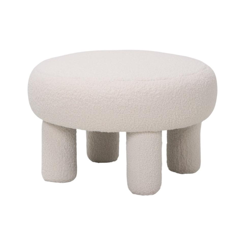 Pouf/Tavolino da Caffè Diametro CM 60 H. 39 IN TESSUTO EFFETTO BOUCLE' BIANCO