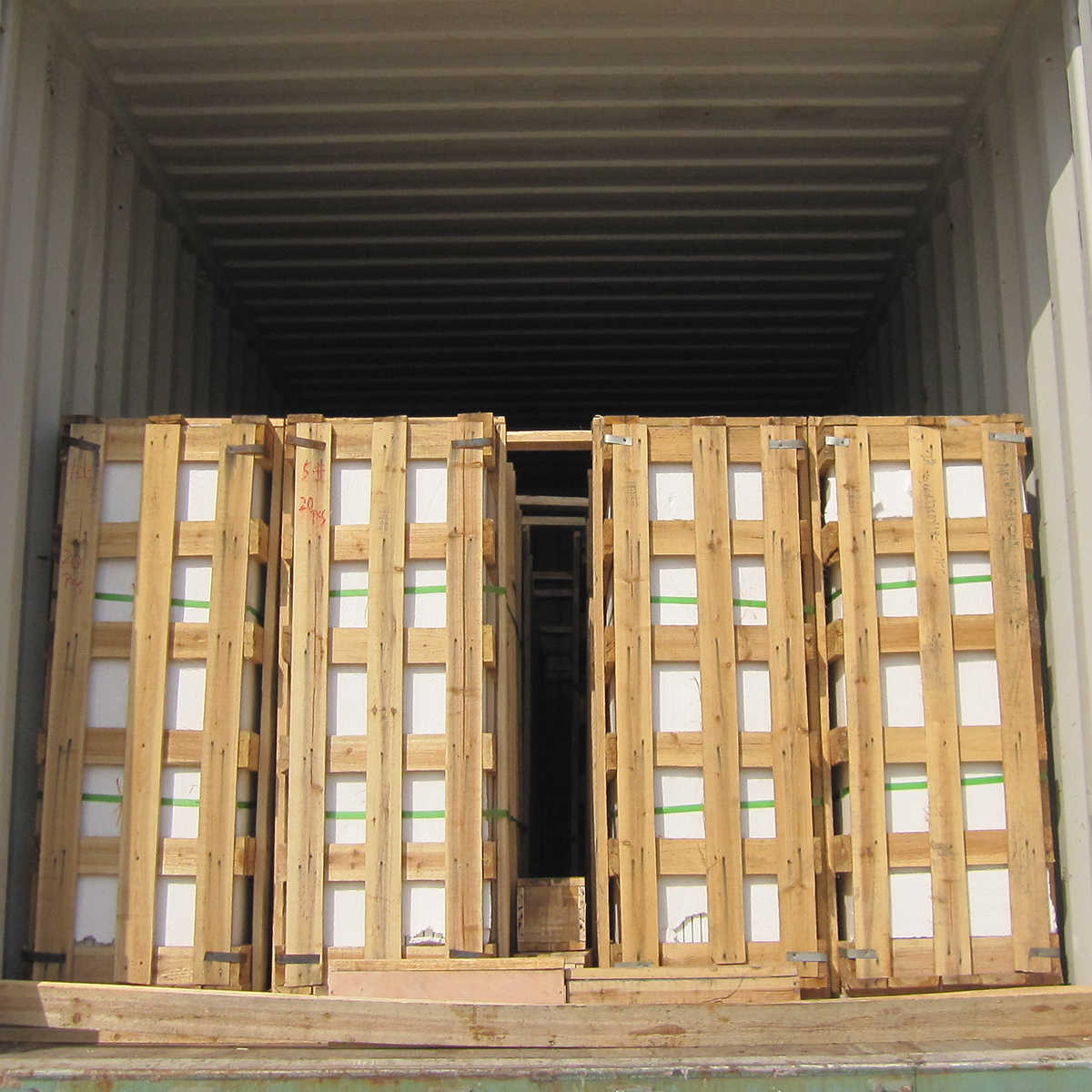 Piastrelle: casse di legno fumigazione, rinforzate con cinghie di metallo all'esterno.