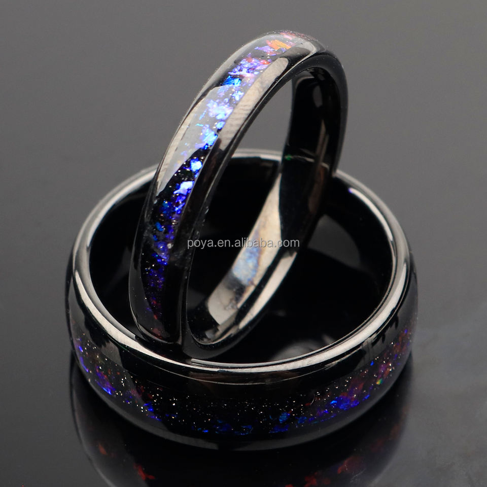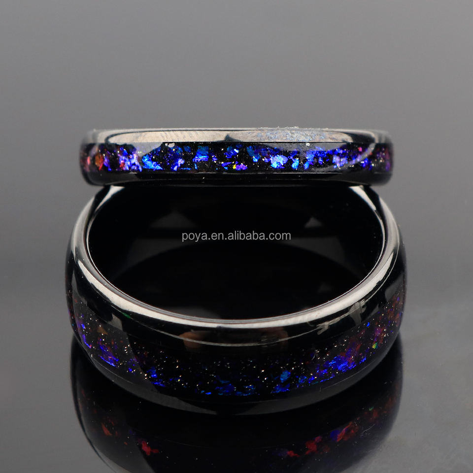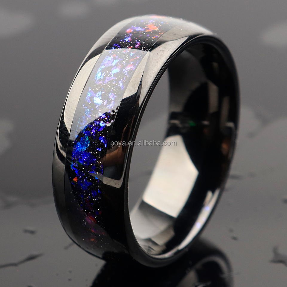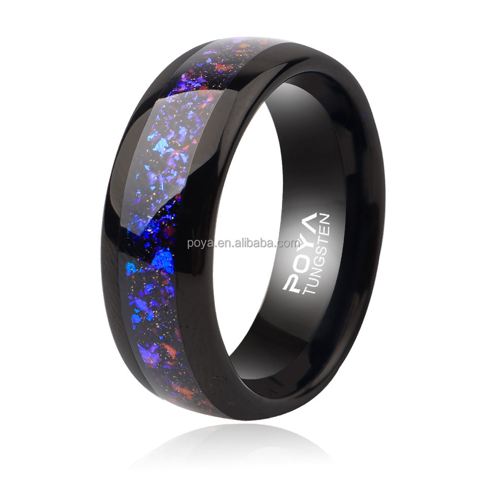 Anelli per Coppie POYA Martellati 8mm 4mm, Fede Nuziale in Tungsteno Nero Lucido a Cupola per Uomo, Fascia Comfort Fit