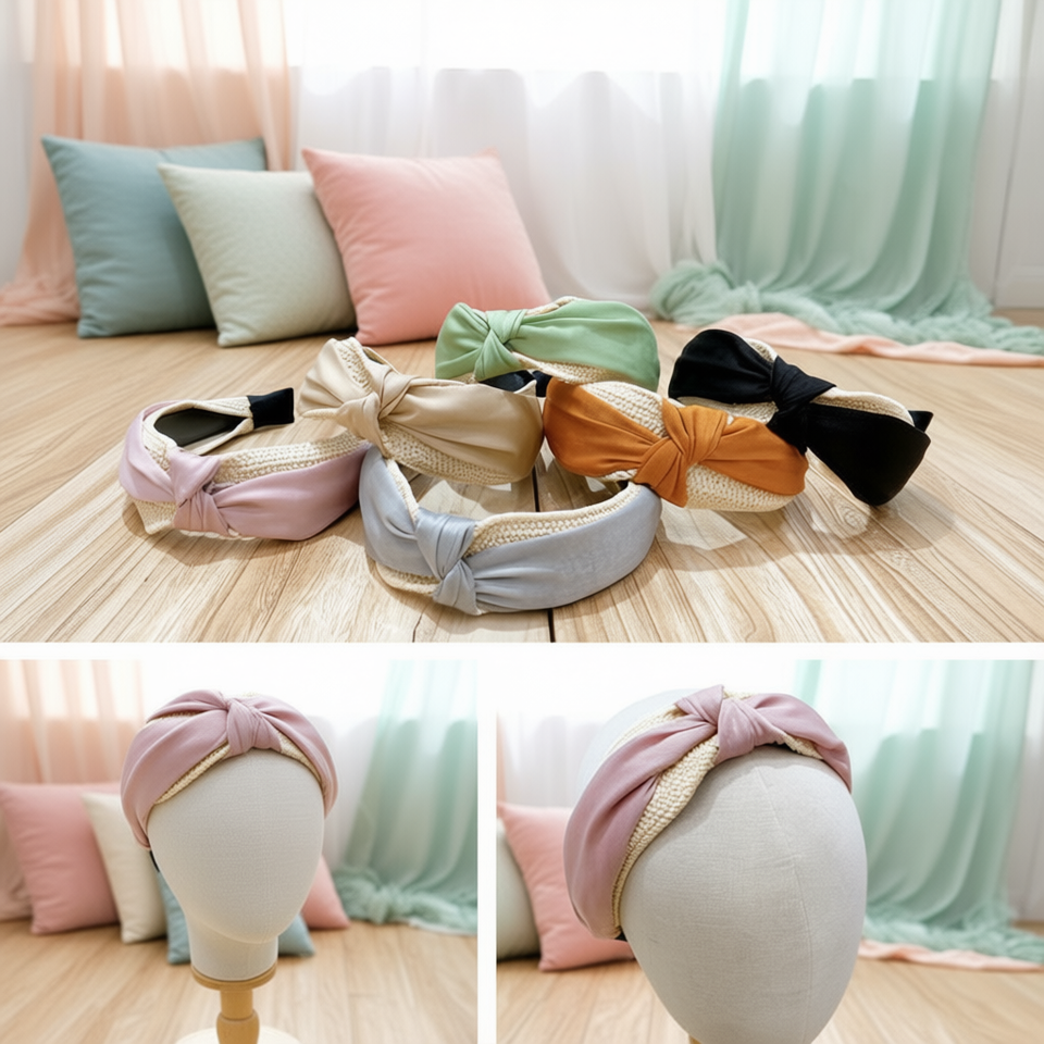 Fascia per Capelli in Velluto Tencel con Nodo Centrale, Confezione da 12 Pezzi, 600 Ref44080