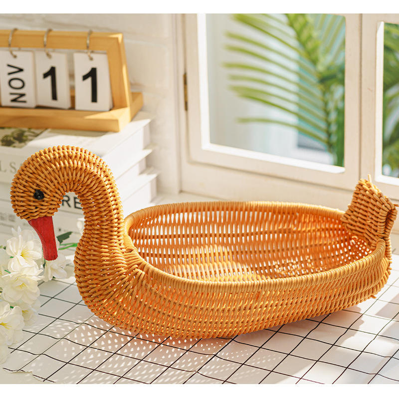 Cesto Portaoggetti in Rattan PP Intrecciato a Mano a Forma di Animale, Cesto per Frutta e Snack per Soggiorno e Scrivania, Cesto Artigianale in Vimini