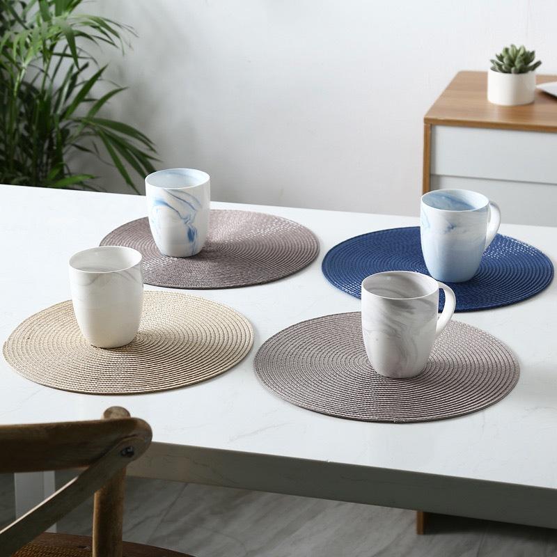 Tovagliette tonde intrecciate in PP tovagliette personalizzate tovagliette isolanti termici set di tappetini da tavolo da pranzo di lusso tazza sottobicchiere