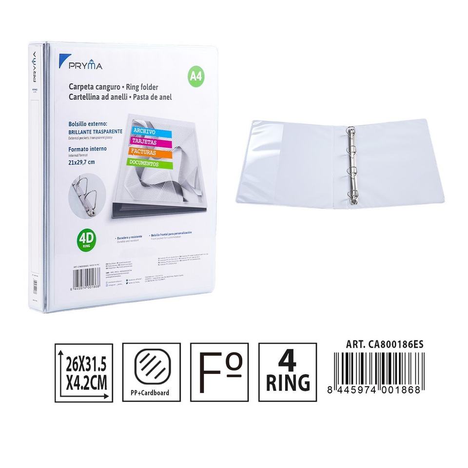 PP kangaroo folder with 4 rings 260x315mm ring 25mm for documents