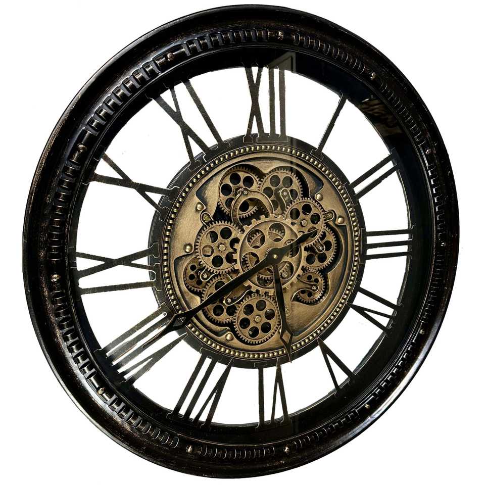 PRAG Gear Antique Style 63 cm Black-Gold Metal Counter Wall Clock