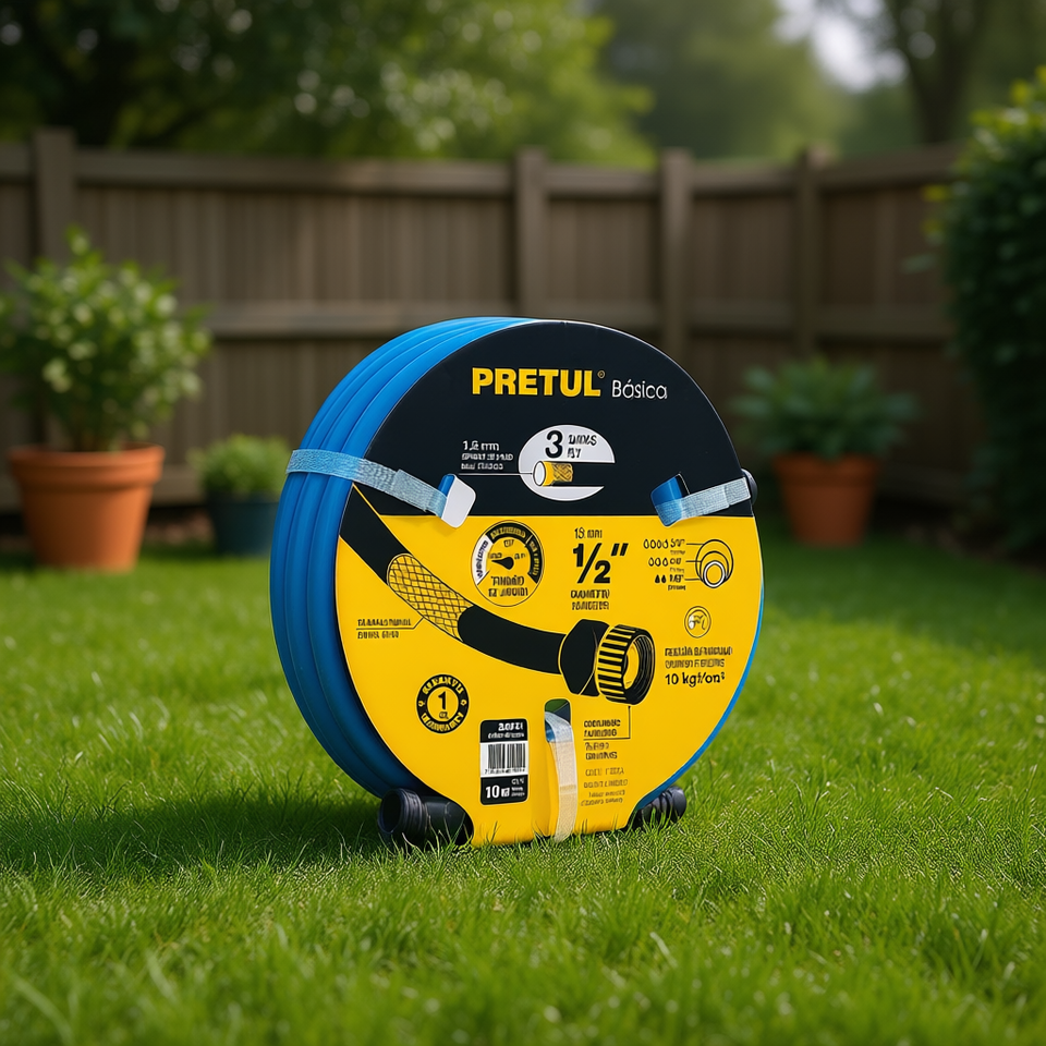 Pretul Basic 10M 1/2 Inch Garden Hose Reel With Plastic Connections, Polyurethane Material, Rewindable Design For Efficient Wate