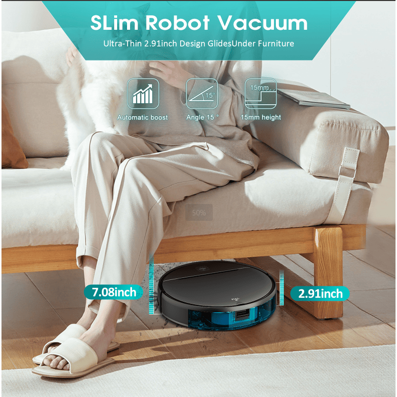 Robot Aspirapolvere 3-in-1 PS181 con Navigazione Laser, Forte Aspirazione 2000Pa, Batteria 2500mAh, Rumore <65dB, Connessione Wifi+APP