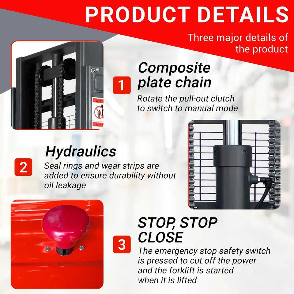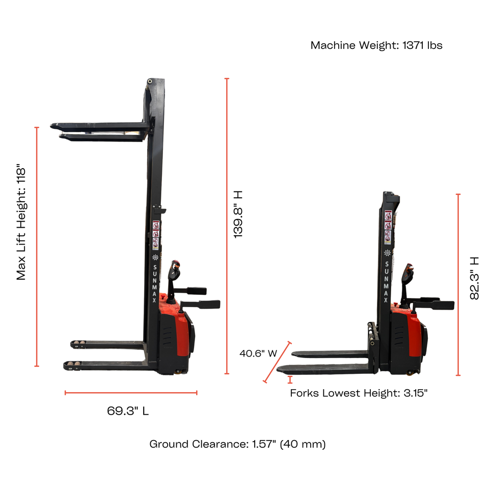 PS3300FE-3M Fulll-Electric Pallet Stacker, 3300 lbs Capacity, 118 Lifting Height, Works with Open-bottom Pallets