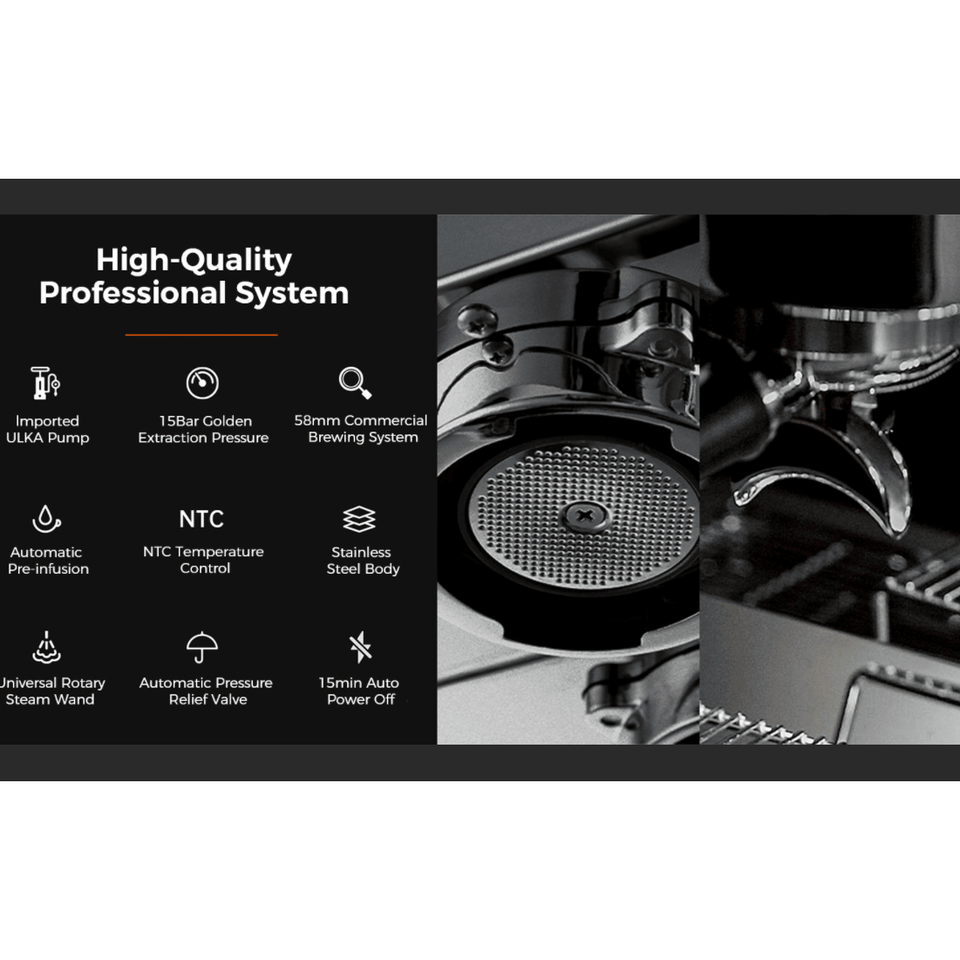 Macchina per Espresso Semi-Automatica PSG3005H 1500W con Pompa ad Alta Pressione 15 Bar di ULKA, Estrae 1/2 Tazza di Caffè