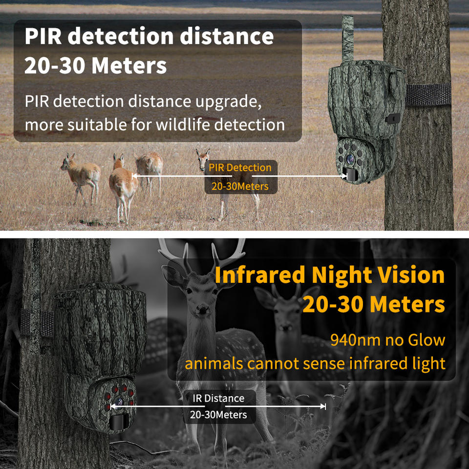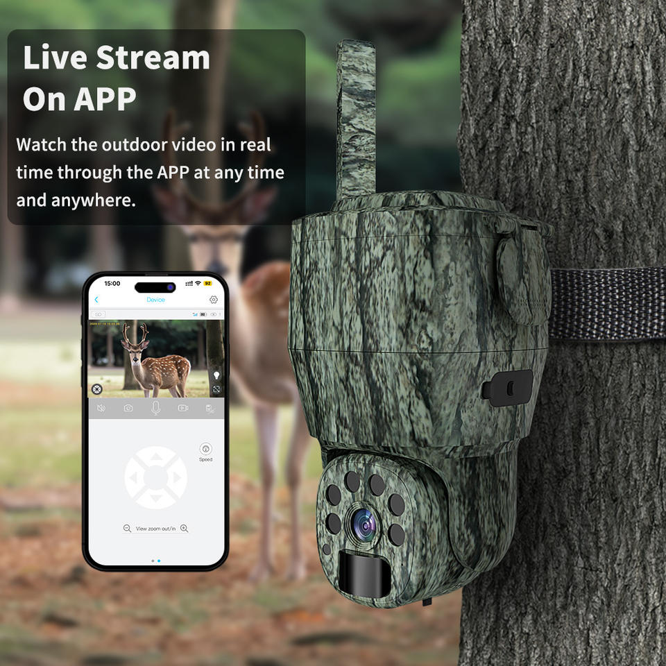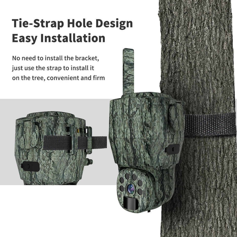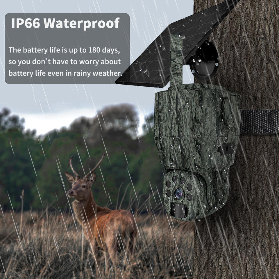 Fotocamera da Caccia PTZ 4G LTE con Visione Notturna 940nm Senza Luce Visibile, Fotocamera Wireless con SIM per Caccia, Mimetica Verde con Pannello Solare