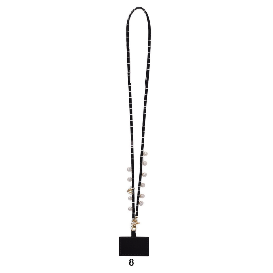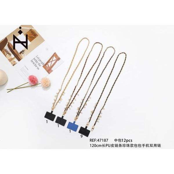 Cinturino per Borsa e Telefono in Pelle PU con Catena 120cm e Ciondolo di Perle, Doppio Uso