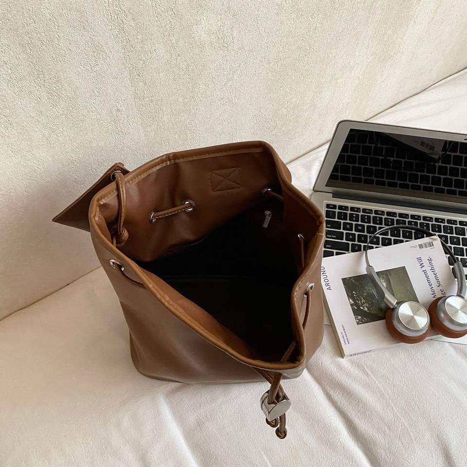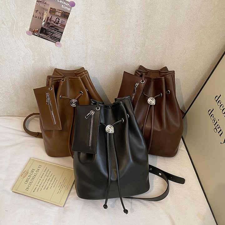 Borsa a Tracolla Grande in Pelle PU per Donna, Nuova Borsa a Secchiello con Coulisse
