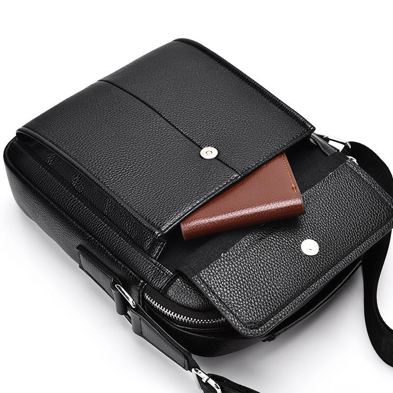 Borsa a Tracolla in Pelle PU per Uomo Design Classico Logo di Qualità per Affari e Viaggi