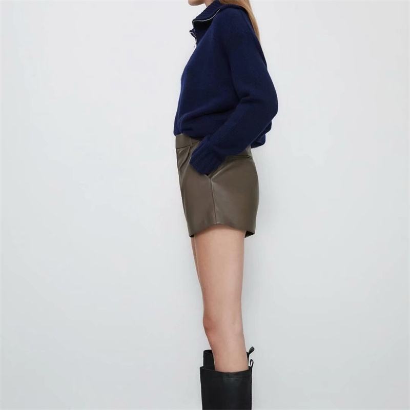 PU Leather Shorts New Fashion Women Sexy Elegant High Waist Short Pants Summer Spring Female Pocket PU Shorts
