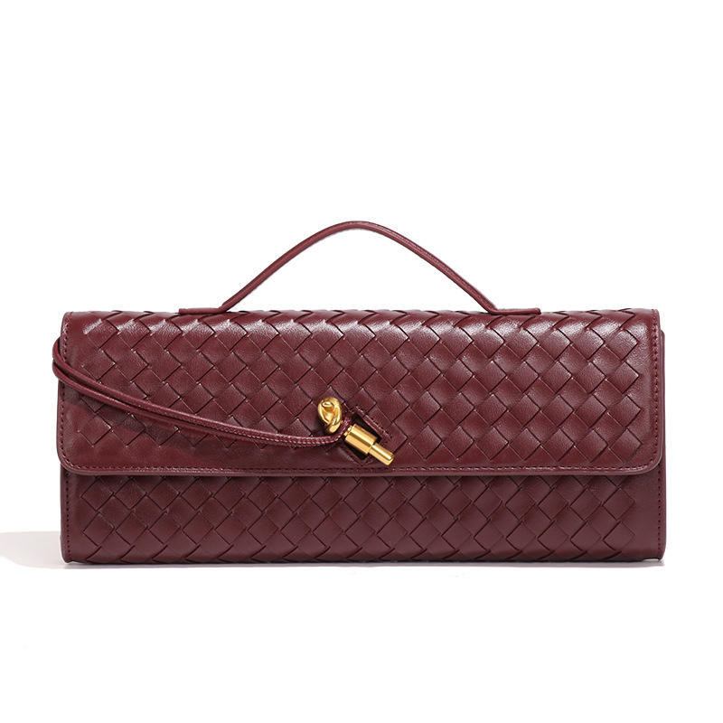 PU Leather Woven Evening Bag with Twist Lock Handle Purse Elegant Structured Clutch for Formal Events and Wholesale