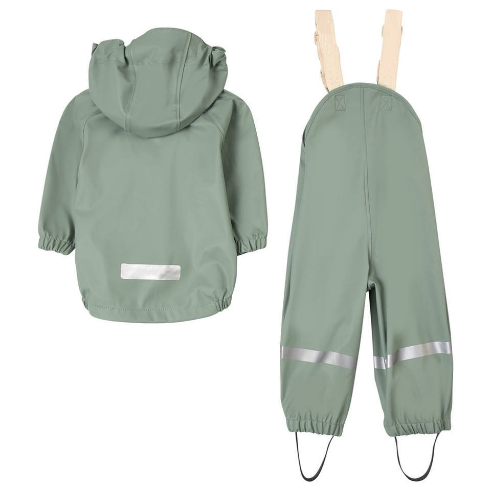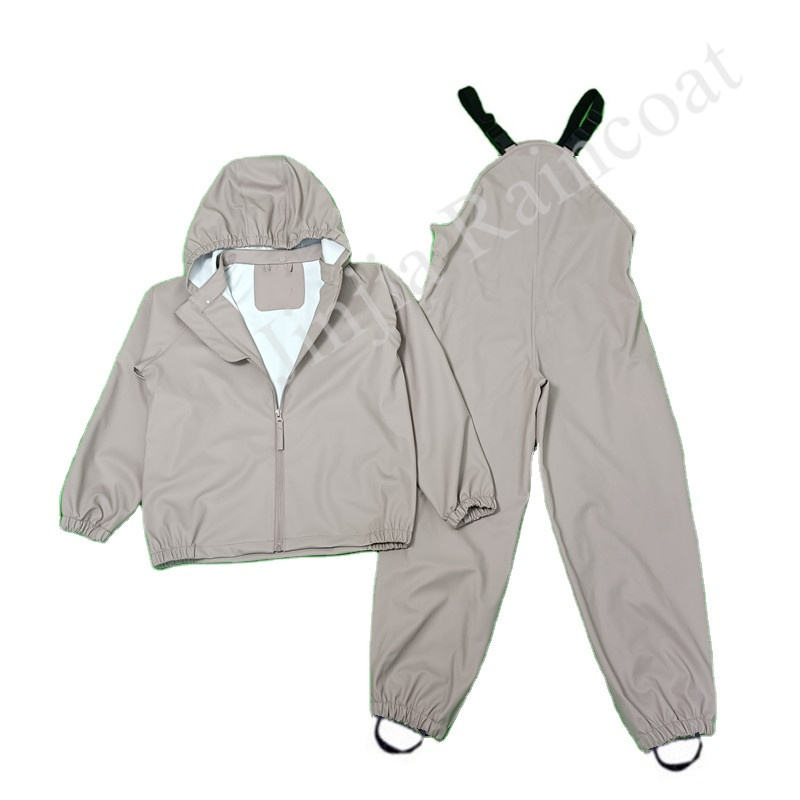 Completo Impermeabile in PU per Bambini, Giacca con Cappuccio e Pantaloni con Pettorina, Set Antipioggia per Bambini
