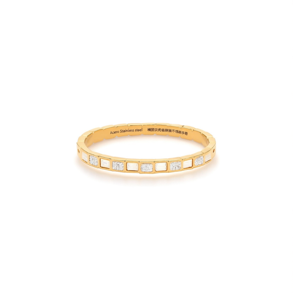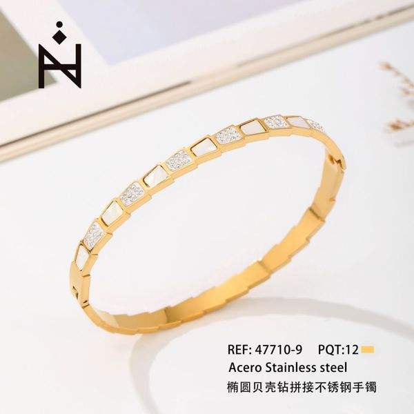 Bracciale a Polsino Ellittico in Acciaio Inossidabile Acero, Placcato Oro con Incastonatura di Diamanti, Gioiello Unisex alla Moda