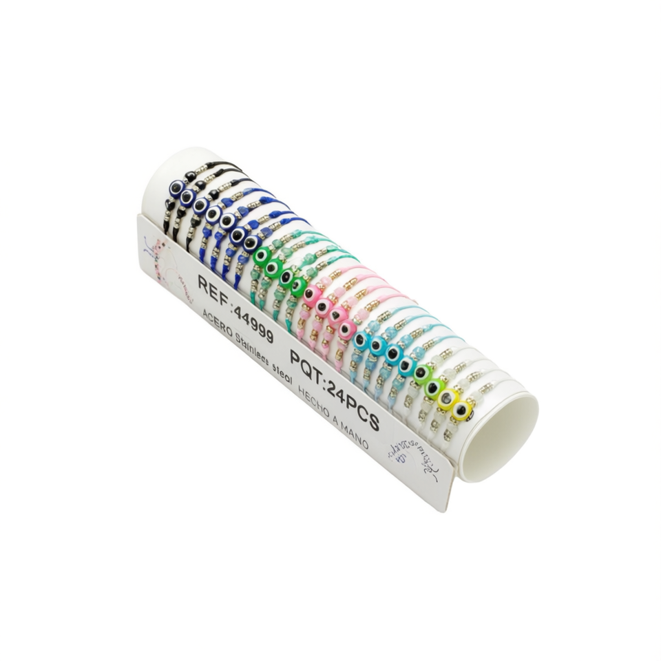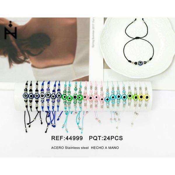 Bracciale a corda con occhielli PULSERA-TUBO taglia 10, in acciaio inossidabile, fatto a mano, con ciondoli