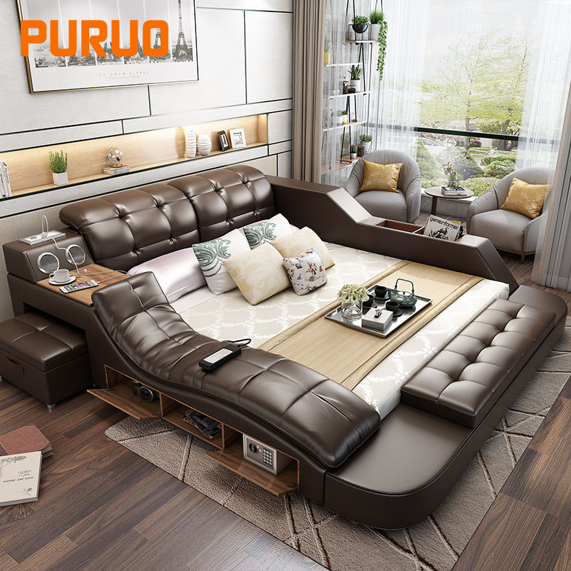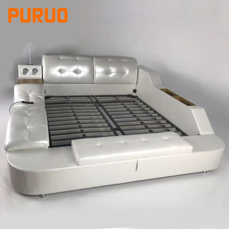 Letto Matrimoniale King Size di Lusso Intelligente e Multifunzione PURUO con Funzione Massaggio e Altoparlante Integrato