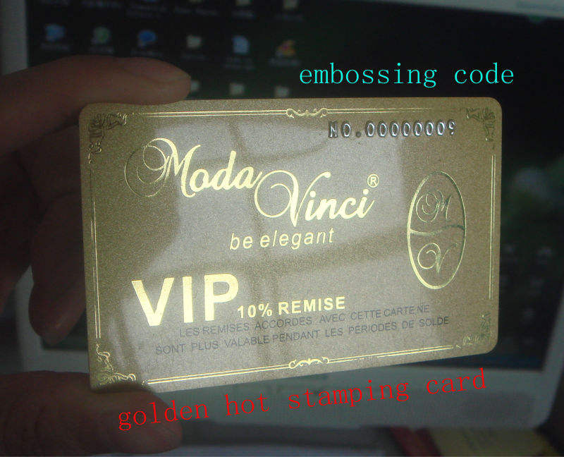 Carta PVC argento timbratura a caldo goffratura numero di plastica biglietto da visita stesso come carta di credito di debito con chip