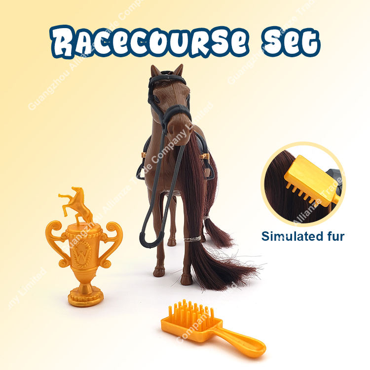 PVC cavalli da corsa in PVC Set di statuette da Ranch con strumenti destriero pettine lungo pettine da corsa trofeo modello di figura animale giocattolo da fattoria