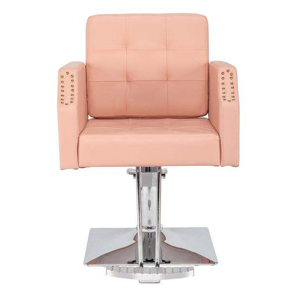 PVC Leather & Aluminum Alloy 150kg Capacity High Oil Pump Barber Chair with Square Chassis and Pink Rivet Type Pedal