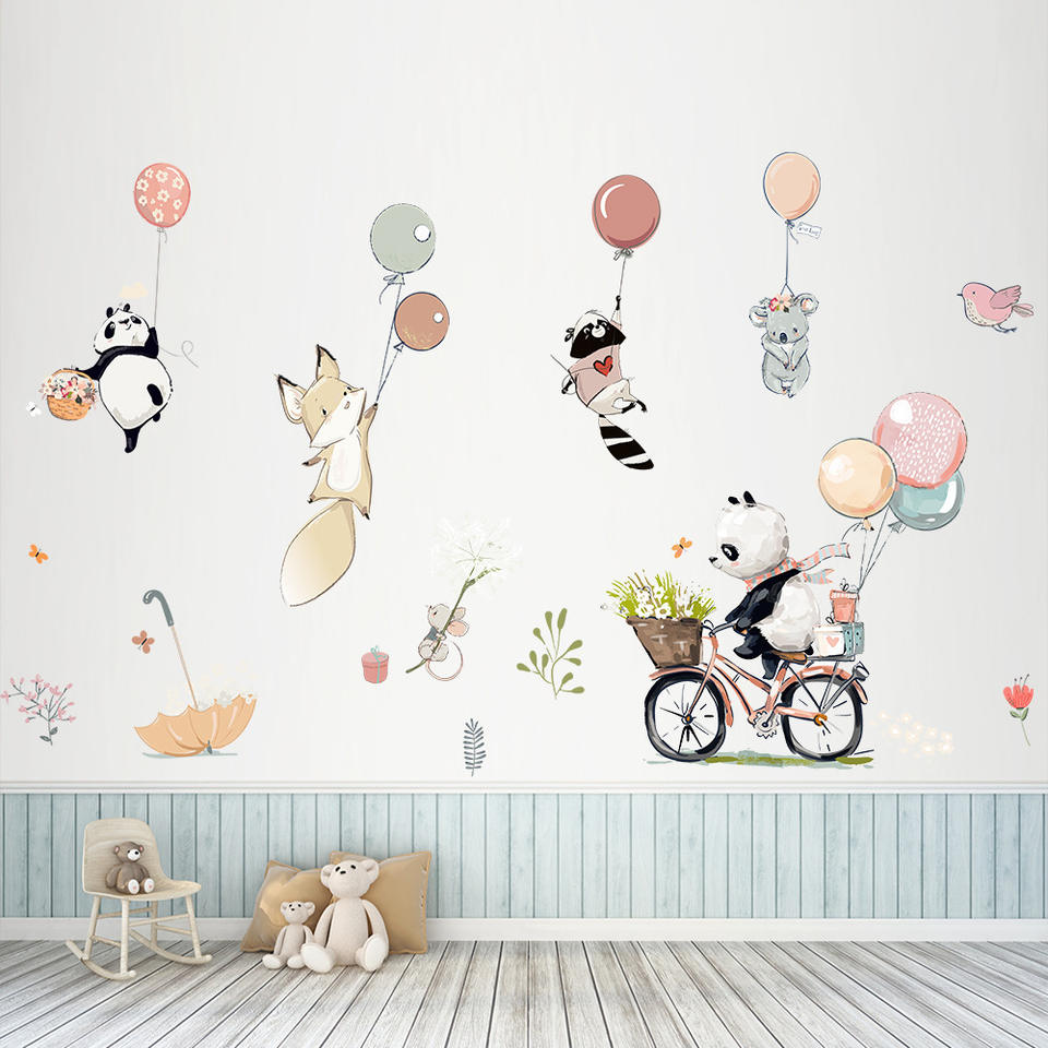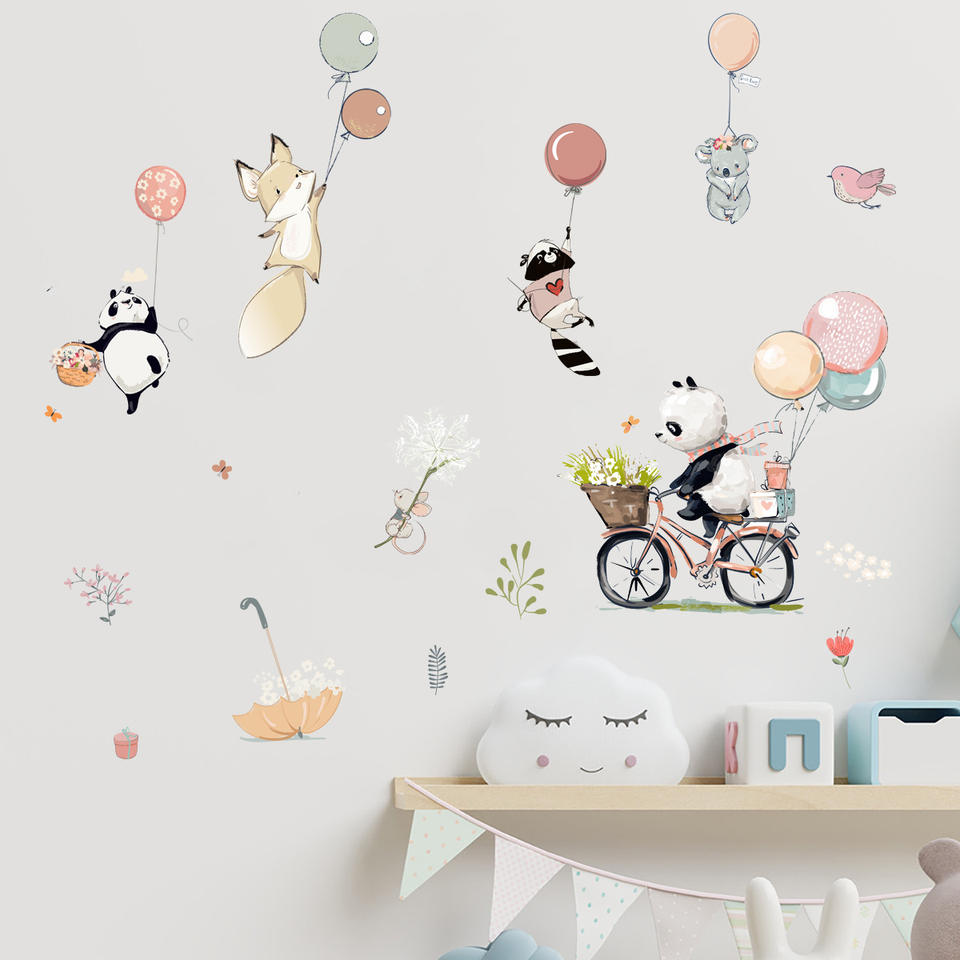 Adesivi Murali Rimovibili in PVC con Animali e Panda per Camerette - Decorazione Murale in PVC con Palloncini e Biciclette