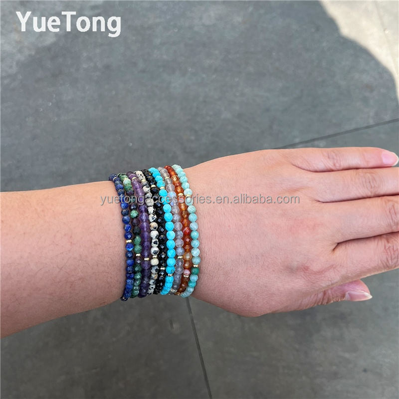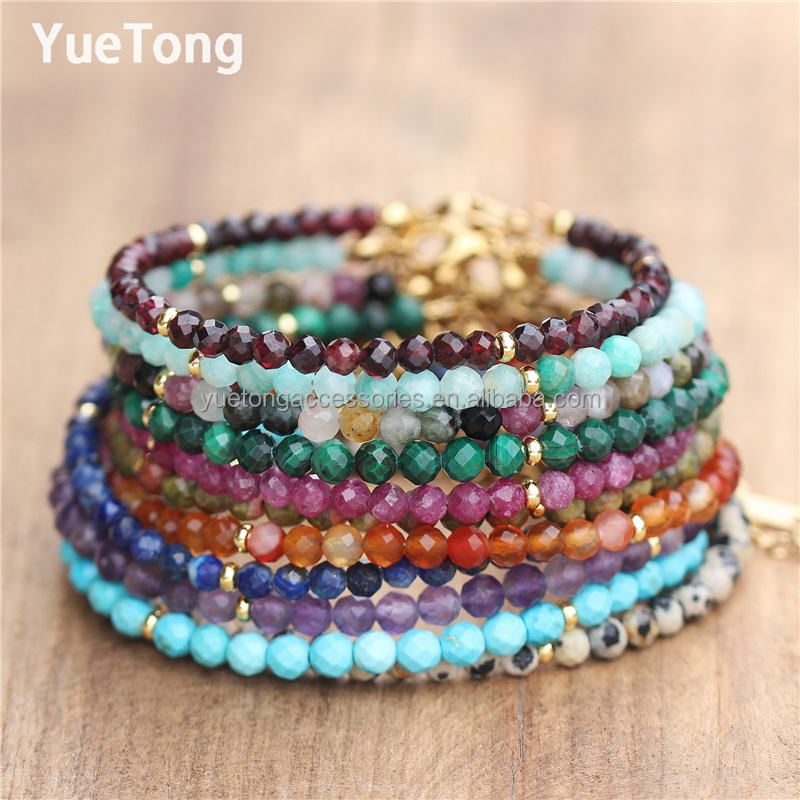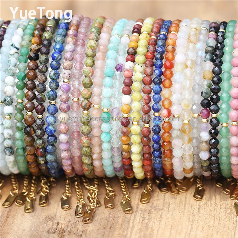 Bracciale Sottile da Donna in Acciaio Inossidabile PVD Oro 18k con Perline di Pietra Preziosa Sfaccettate da 4mm, Cristallo Terapeutico, Gioielli Minimalisti all'Ingrosso