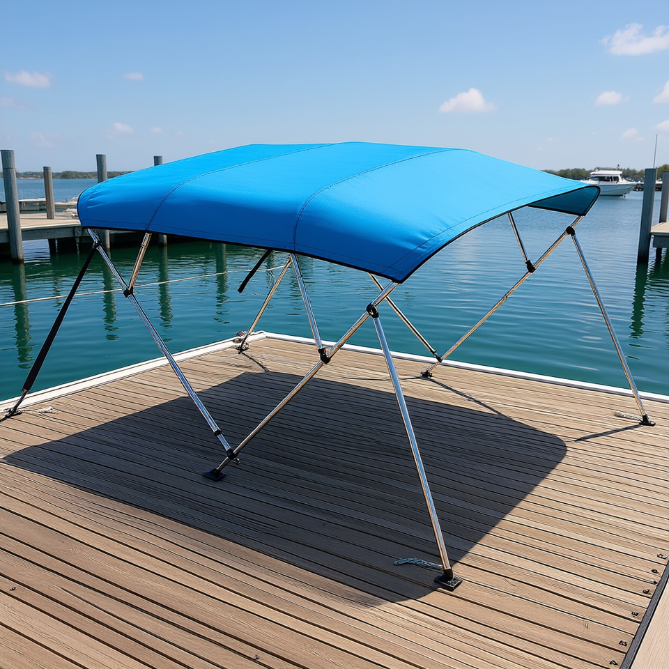 Pacific Blue 4-Bow Bimini Top 600D Polyester Aluminum Frame Waterproof Sun Shade 8'Lx91-96"Wx54"H Boat Canopy