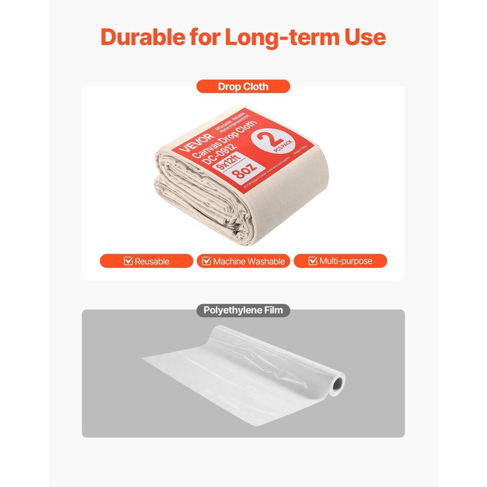 Confezione da 2 teloni in tela 9x12 piedi per pittori, 8 once, coperture protettive professionali multiuso per mobili e pavimenti