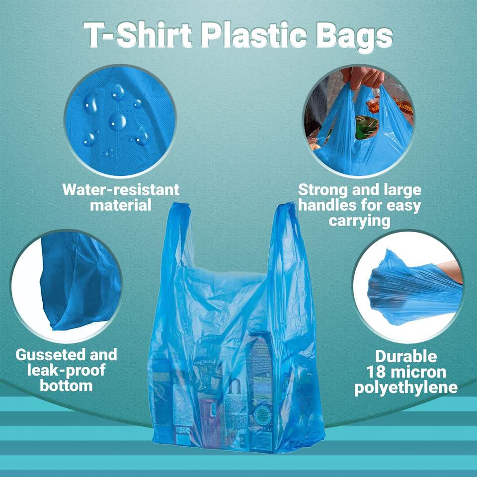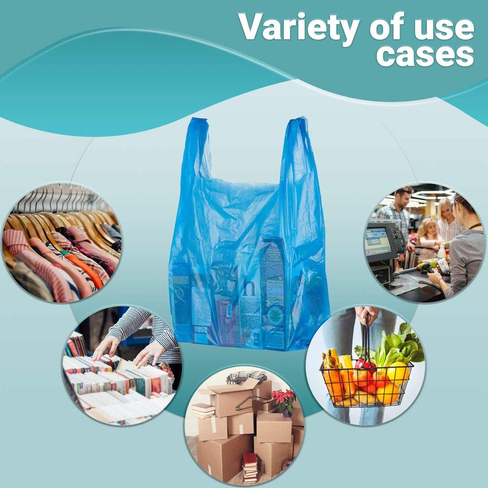 Pack 400 Blue T-Shirt Plastic Bags 18 X 8 X 32 High Density Polyethylene Unprinted Shopping Grocery Bags for Stores Restaurants