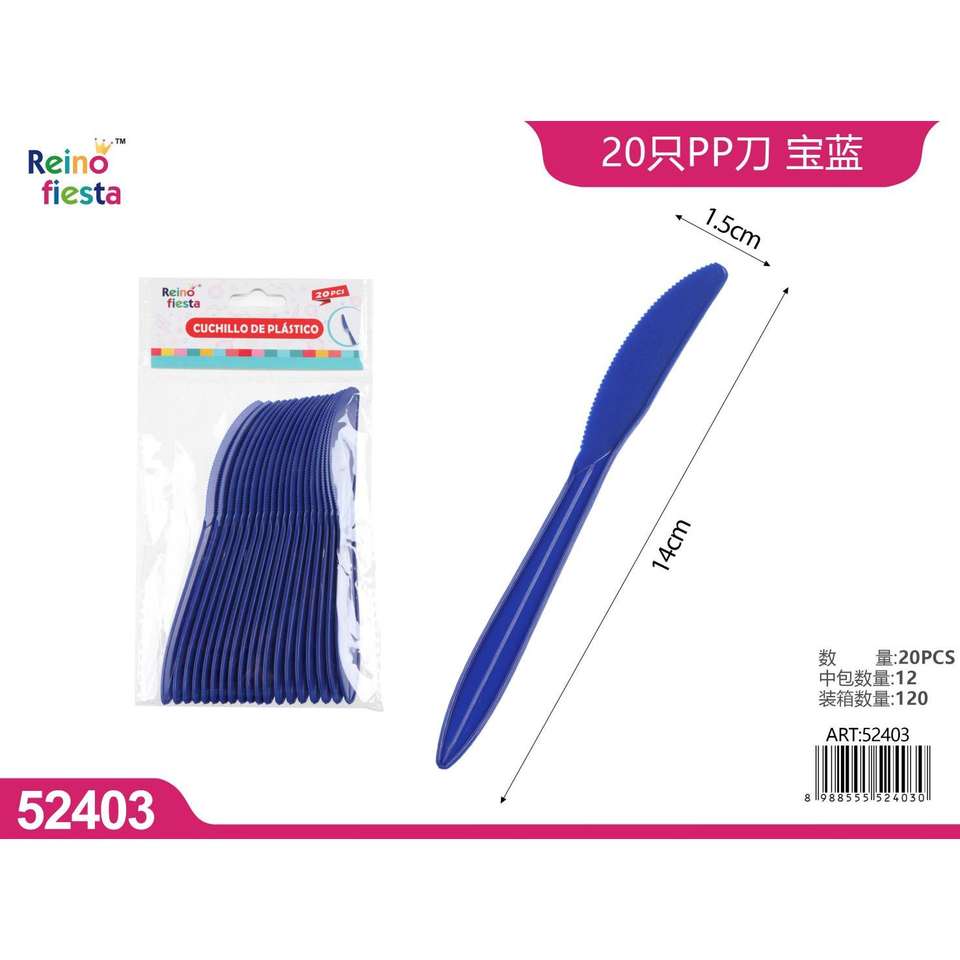Pack of 20 Blue 14cm PP Plastic Disposable Cutlery Simple Modern Style Knives and Spoons for Hotel Use Party and Event
