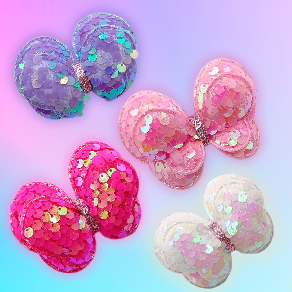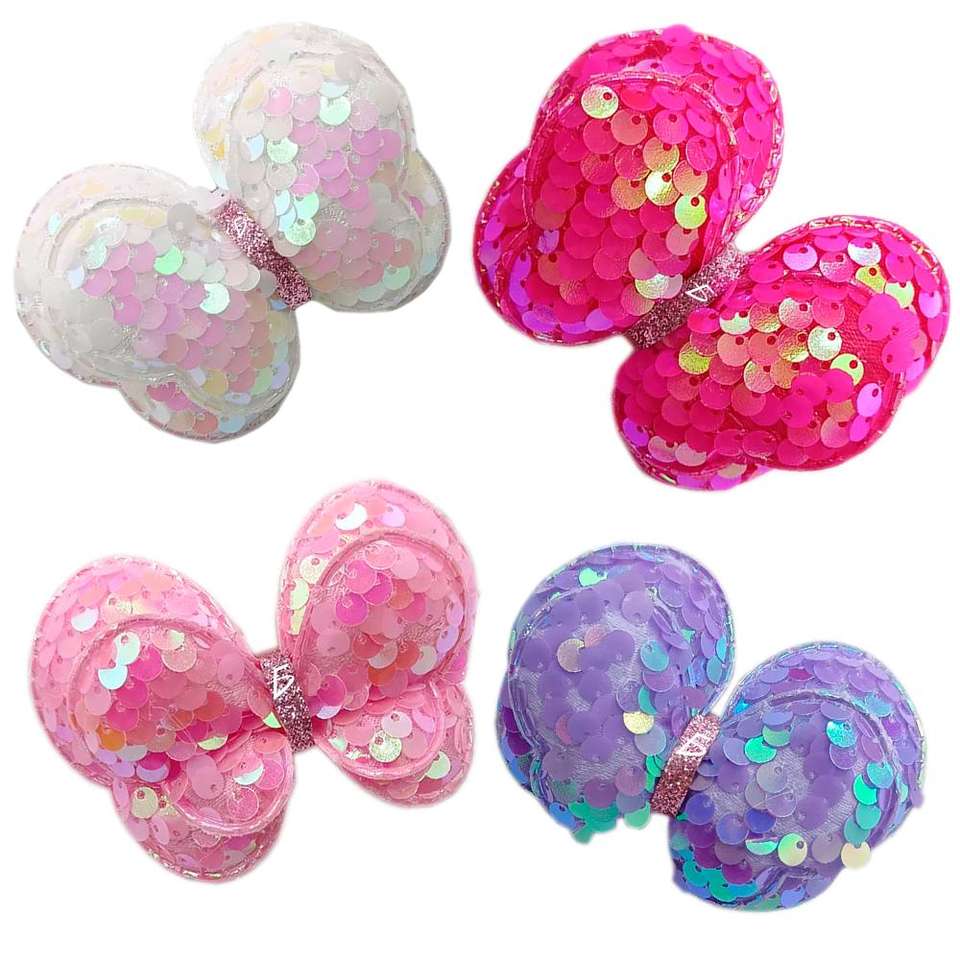 Pack of 4 Flirty Sparkly Butterfly Design Hair Bows with Garter