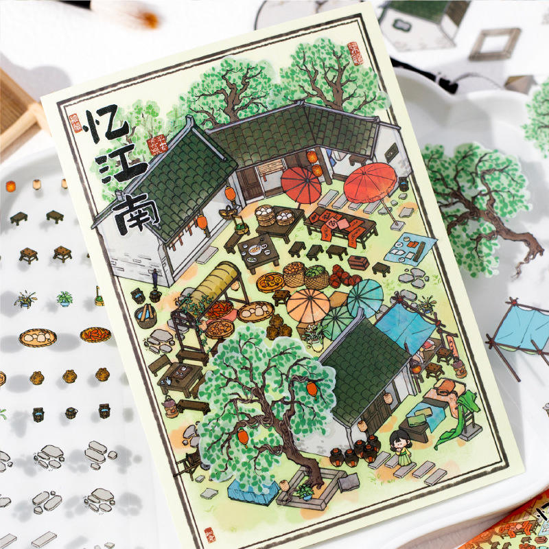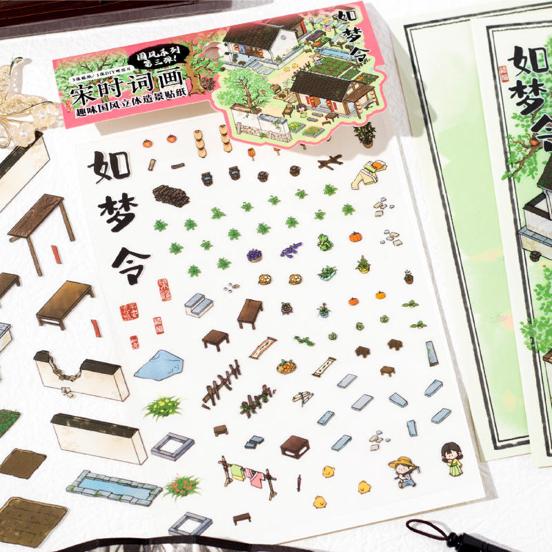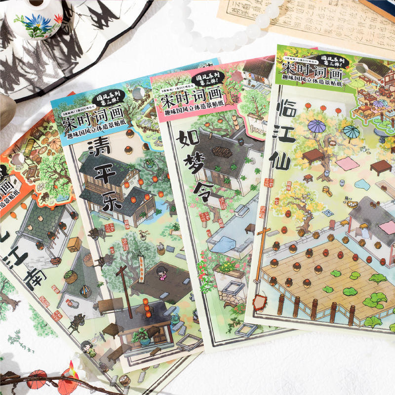 Confezione di 4 stile nazionale 3D tridimensionale manuale di cabina adesivi canzone parola tempo pittura tre bombe Decorative decalcomanie da parete