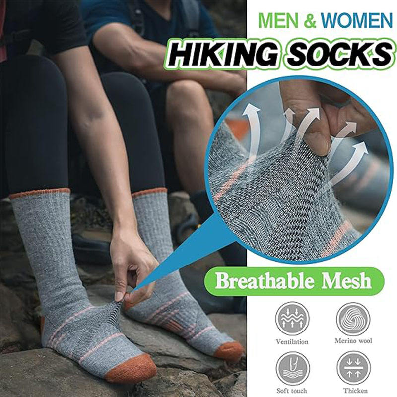Calze da trekking outdoor in lana merino senza cuciture imbottite, da uomo e da donna.