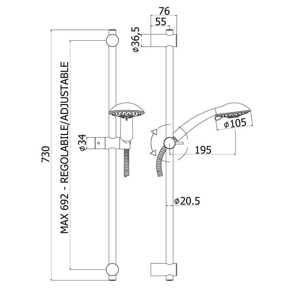 Set Completo di Accessori per Doccia Paffoni Prince in Metallo Cromato