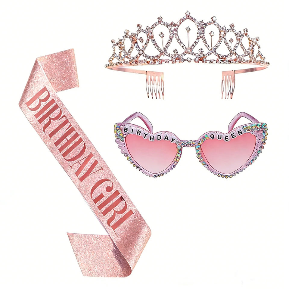 Set Pafu 3 Pezzi per Compleanno: Corona da Regina, Fascia e Occhiali a Cuore Multicolore, Accessori per Foto e Decorazioni per Feste