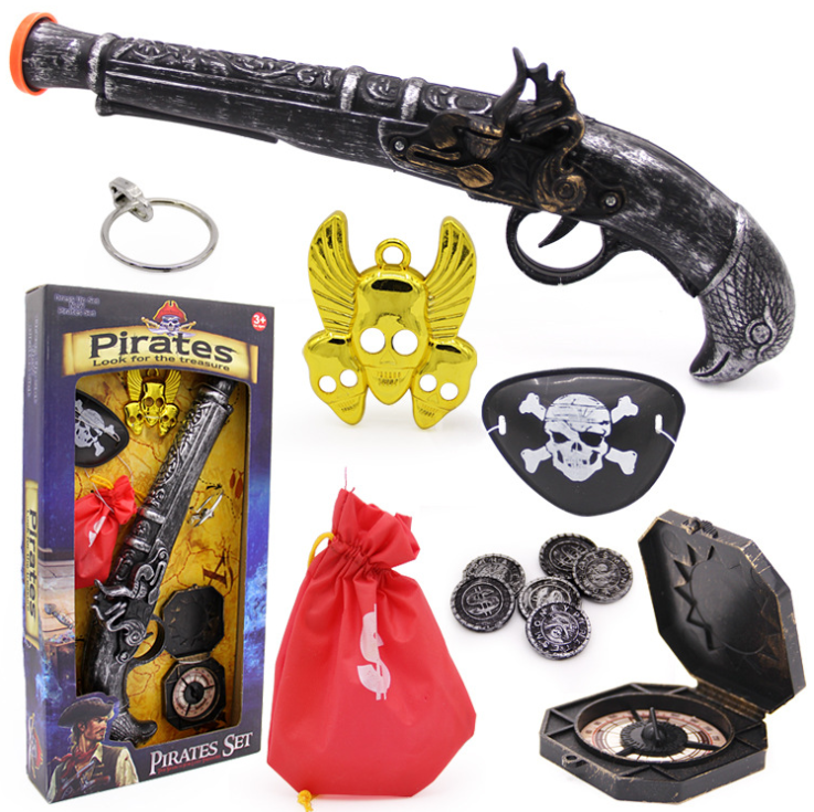 Pafu Halloween Party Props Supplies Plastic Weapons Eyemask Compass Gold Coin Set Pirate Costume Accessories