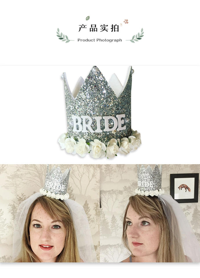 Pafu Rose Gold Bachelorette Party Supplies Bride to Be Sash Glitter Bride Crown Hat Bridal Shower Gift Hen Party Accessories