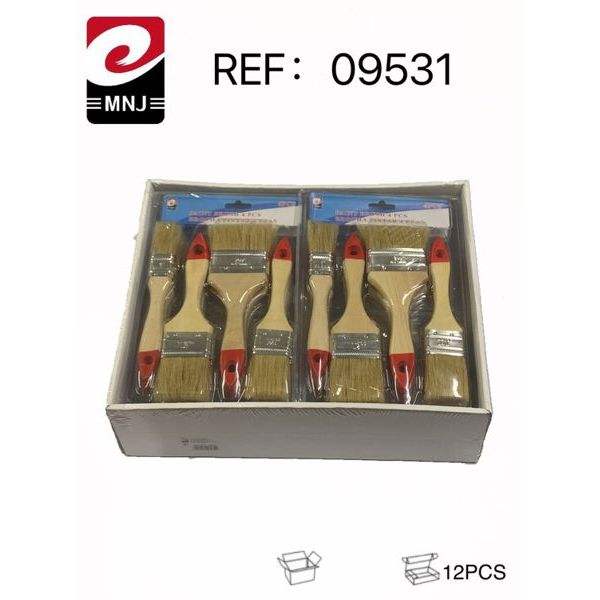 Set di pennelli da pittura 12 pezzi con manico in legno e punta rossa per dipingere e decorare