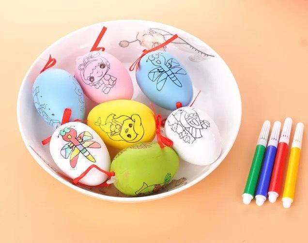 Paint Your Easter Egg DIY Toy with Brush-Plastic Drawing Toys Set for Kids' Hand-painted Graffiti Coloring Eggs