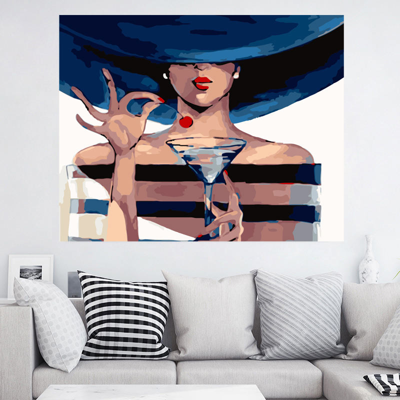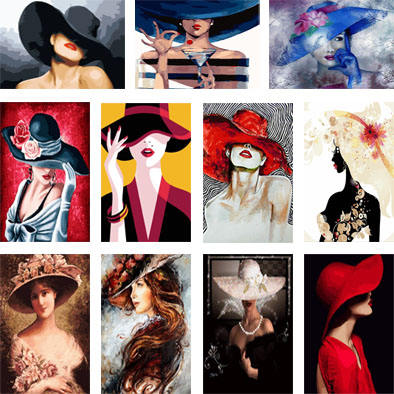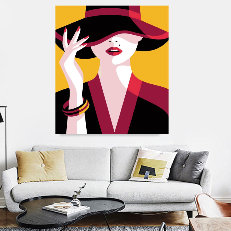 Dipingi con i numeri donna nel cappello dipinto a mano pittura a olio fai da te con i numeri kit disegno su tela senza cornice decorazioni per la casa artigianato per adulti