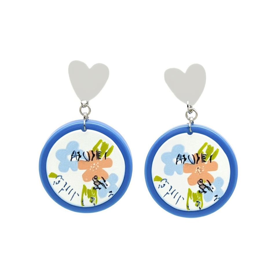 Orecchini pendenti dipinti con design floreale, forma rotonda, ciondolo a cuore bianco, gioielli alla moda, 12 pezzi