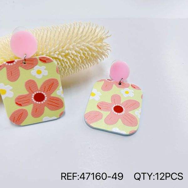 Orecchini pendenti dipinti con disegno floreale giallo rosa, 12 pezzi, gioielli alla moda